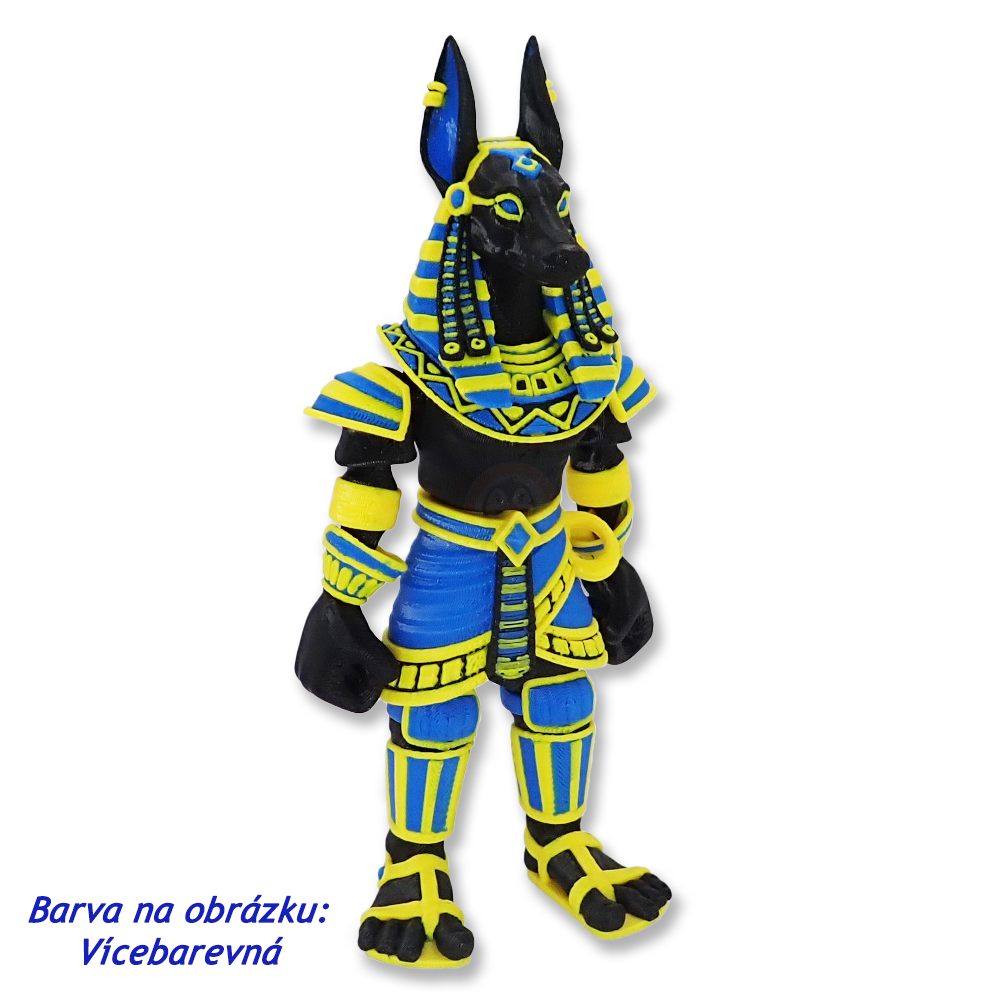 Představujeme vám postavičku, která dokáže zaujmout na první pohled. Má tělo silného bojovníka a hlavu černého šakala – a vypadá tak dobře, že se na něj budete chtít dívat pořád. Ať už stojí hrdě uprostřed vaší poličky, nebo se pustí do akční pózy, vždycky bude vypadat jako opravdový vládce pouště.  Co je na něm nejlepší? Dá se hýbat s celým tělem! Navíc umí stát pevně na vlastních nohách, takže nepotřebuje žádnou oporu – prostě ho postavíte a on se už jen tváří, že střeží vaše království.