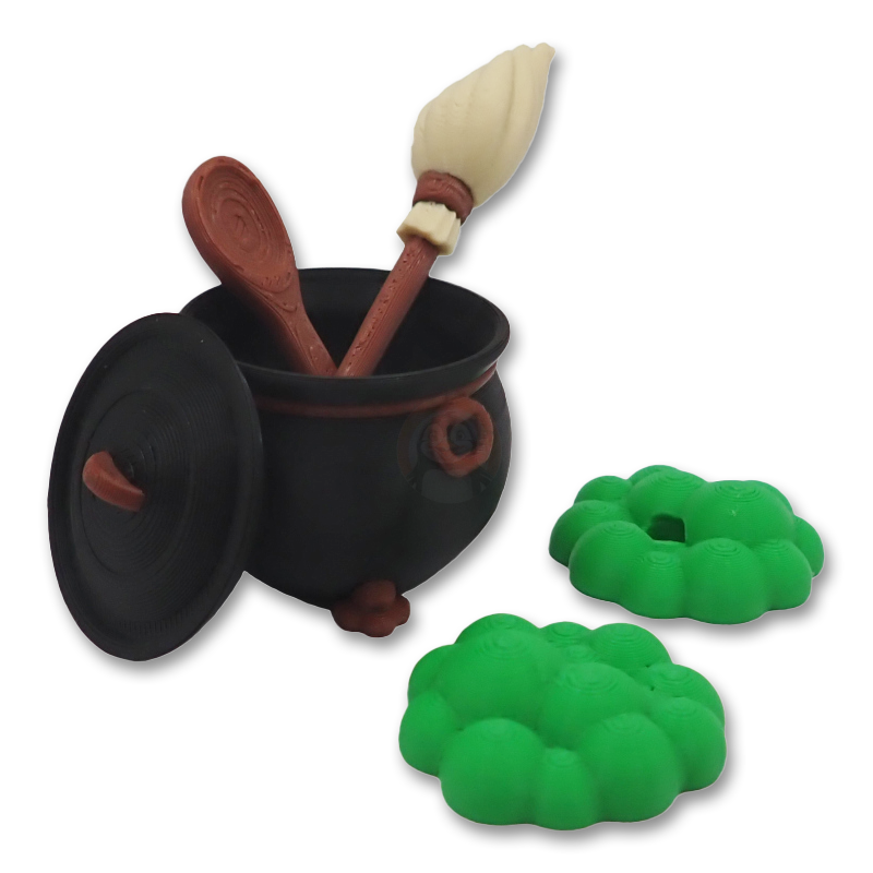 Začněme kotlíkem na lektvary – nebude to žádný obyčejný hrnec, to vám zaručujeme! S ním budete vařit takové elixíry, že se i samotná čarodějka se bude divit, co všechno dokáže! Nebude chybět ani koště na noční lety, které vám zaručí, že i na nejdivočejší cestě mezi stromy budete mít dokonalý komfort. A co by to bylo za čarodějnici bez kouzelné vařečky? Tato malá kouzelná pomůcka zvládne míchat tak rychle, že se všechny ingredience roztočí v tanci!