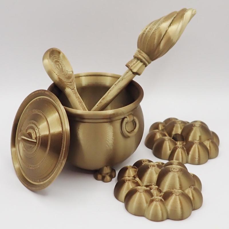 Začněme kotlíkem na lektvary – nebude to žádný obyčejný hrnec, to vám zaručujeme! S ním budete vařit takové elixíry, že se i samotná čarodějka se bude divit, co všechno dokáže! Nebude chybět ani koště na noční lety, které vám zaručí, že i na nejdivočejší cestě mezi stromy budete mít dokonalý komfort. A co by to bylo za čarodějnici bez kouzelné vařečky? Tato malá kouzelná pomůcka zvládne míchat tak rychle, že se všechny ingredience roztočí v tanci!
