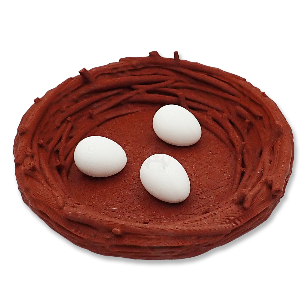 Vybraná barva platí pro hnízdo samotné – vajíčka uvnitř zůstávají bílá jako správná dinosauří miminka! 🥚🦕