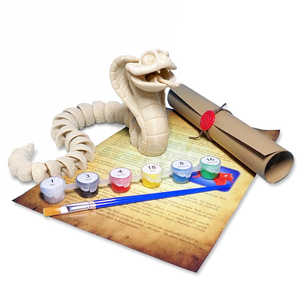 Každá naše postavička má svůj vlastní jedinečný příběh, který vás a vaše děti zavede do kouzelného světa plného fantazie! Spolu s 3D omalovánkou si můžete pořídit i originální pohádku, ve které je daná postavička hlavním hrdinou - 128. Příběh Kobry Najy: Záhada hadího oka. Přidejte si tuto pohádku k objednávce a udělejte si z malování ještě krásnější zážitek, nebo si ji schovejte jako milou odměnu po vybarvení postavičky. 📖 A na konci pohádky? Tři kreativní úkoly, které rozproudí dětskou představivost!