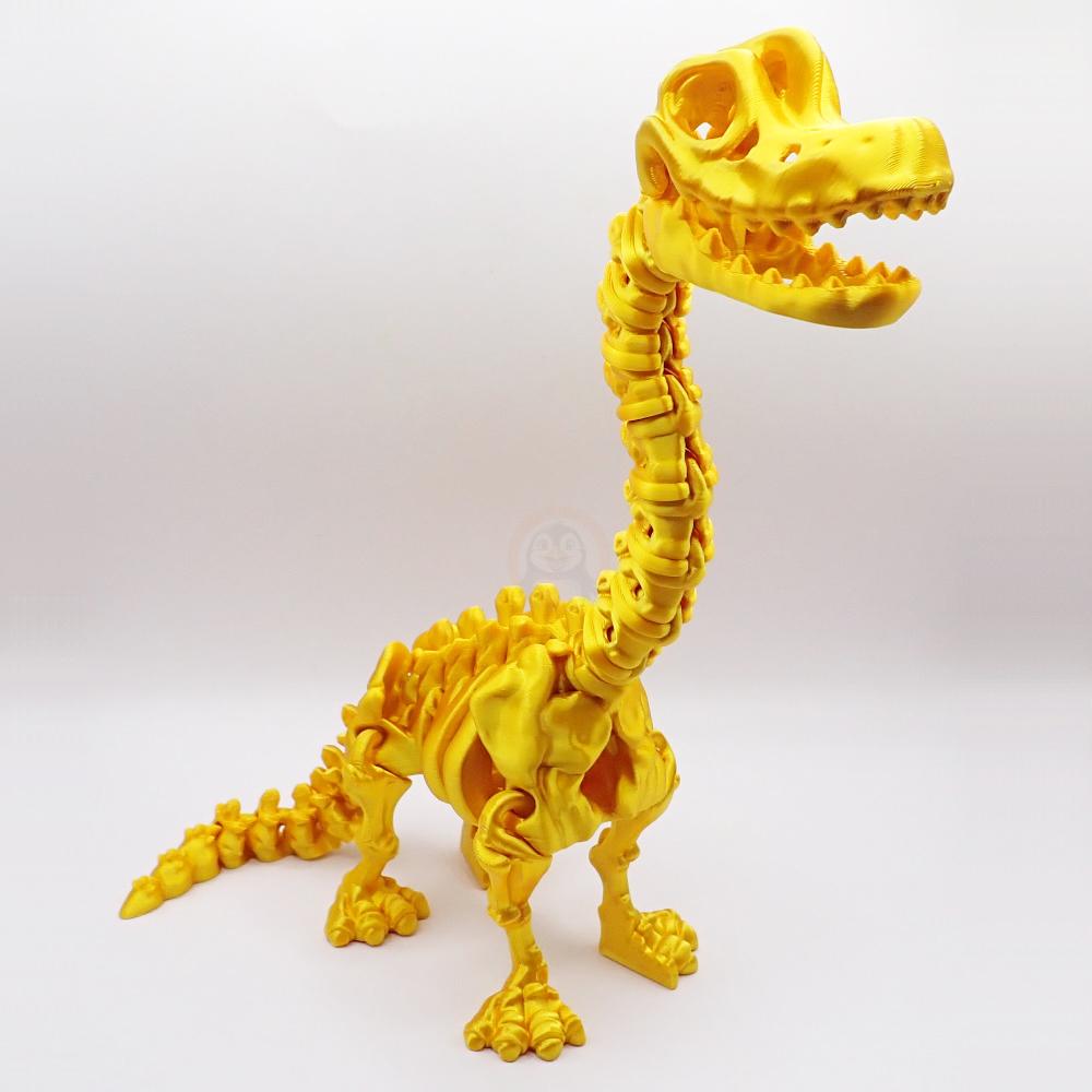 Seznamte se s naším brachiosaurem – legendárním dlouhánem, který vám ukáže, že být kostrou rozhodně není nuda! Tenhle kousek není žádná obyčejná postavička – je složený z mnoha pečlivě propojených dílů, takže se můžete těšit na pořádnou dávku pohybu i zábavy. Dlouhý krk natahuje jako zvídavá žirafa, čelist se dá otevřít dokořán (ideální na dinosauří úsměv nebo malý řev „raaaa!“) a díky kloubům působí až podezřele živě.