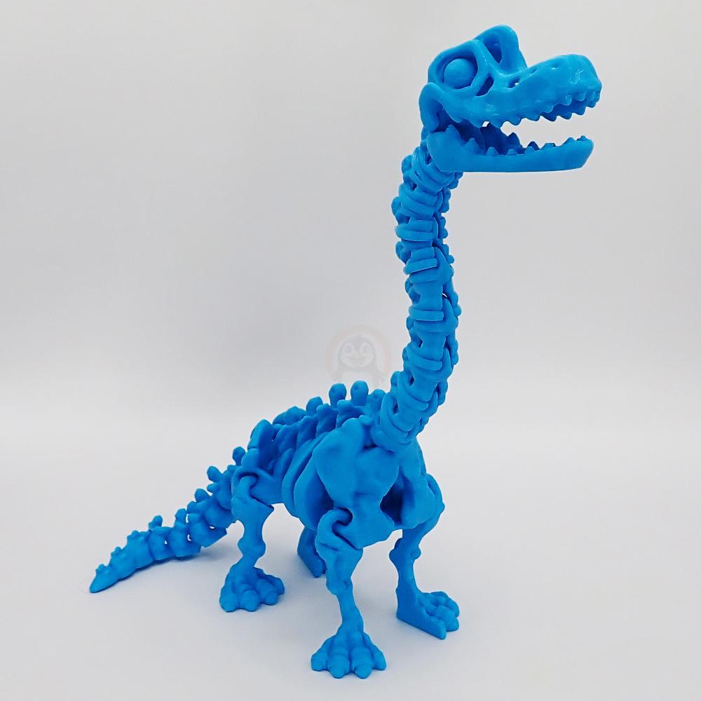 Seznamte se s naším brachiosaurem – legendárním dlouhánem, který vám ukáže, že být kostrou rozhodně není nuda! Tenhle kousek není žádná obyčejná postavička – je složený z mnoha pečlivě propojených dílů, takže se můžete těšit na pořádnou dávku pohybu i zábavy. Dlouhý krk natahuje jako zvídavá žirafa, čelist se dá otevřít dokořán (ideální na dinosauří úsměv nebo malý řev „raaaa!“) a díky kloubům působí až podezřele živě.