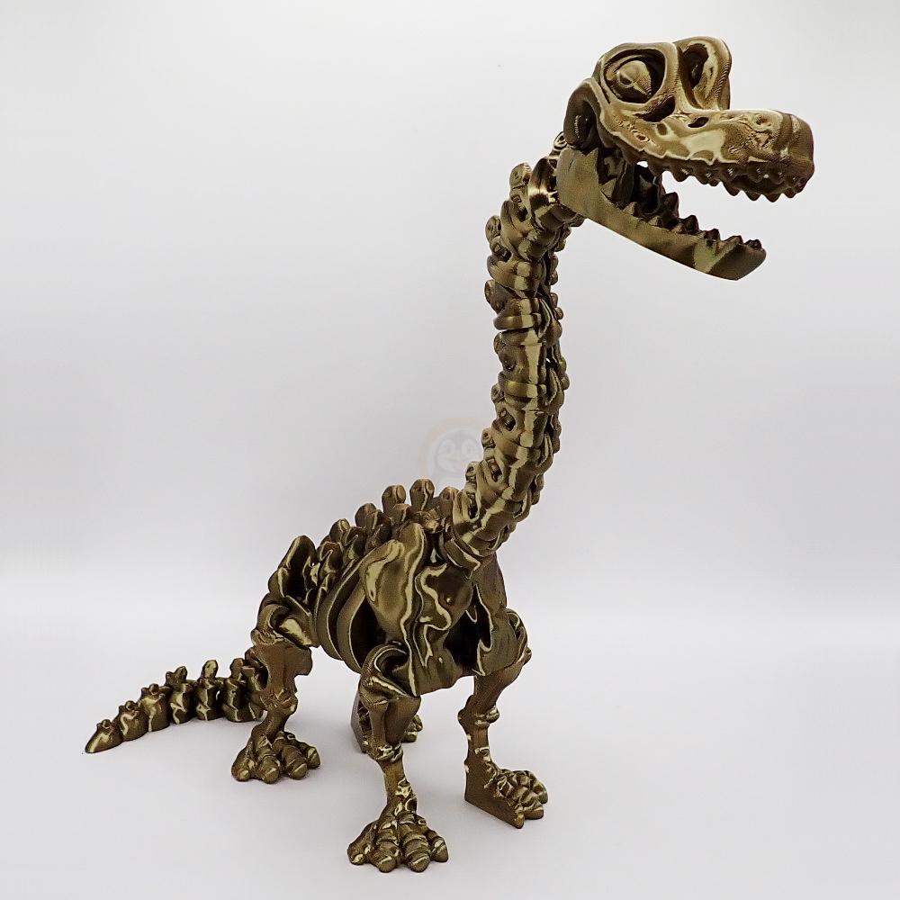 Seznamte se s naším brachiosaurem – legendárním dlouhánem, který vám ukáže, že být kostrou rozhodně není nuda! Tenhle kousek není žádná obyčejná postavička – je složený z mnoha pečlivě propojených dílů, takže se můžete těšit na pořádnou dávku pohybu i zábavy. Dlouhý krk natahuje jako zvídavá žirafa, čelist se dá otevřít dokořán (ideální na dinosauří úsměv nebo malý řev „raaaa!“) a díky kloubům působí až podezřele živě.