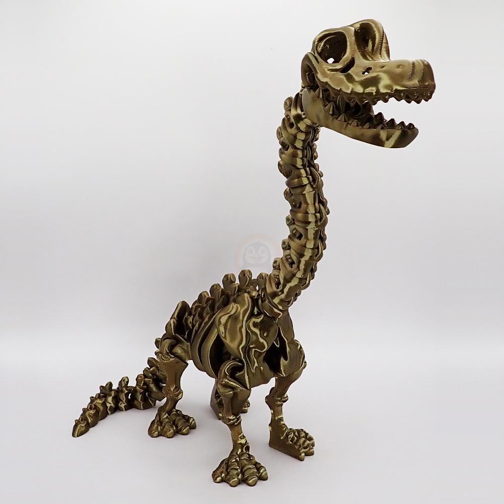 Seznamte se s naším brachiosaurem – legendárním dlouhánem, který vám ukáže, že být kostrou rozhodně není nuda! Tenhle kousek není žádná obyčejná postavička – je složený z mnoha pečlivě propojených dílů, takže se můžete těšit na pořádnou dávku pohybu i zábavy. Dlouhý krk natahuje jako zvídavá žirafa, čelist se dá otevřít dokořán (ideální na dinosauří úsměv nebo malý řev „raaaa!“) a díky kloubům působí až podezřele živě.