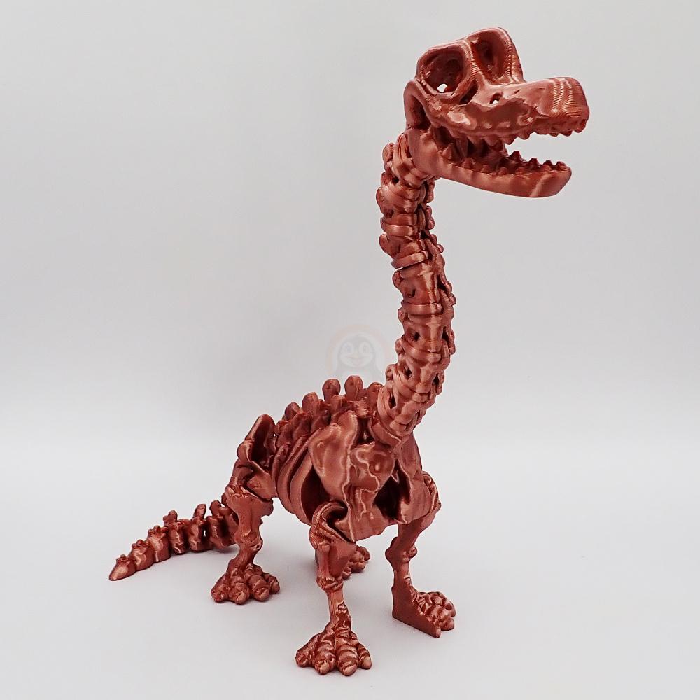 Seznamte se s naším brachiosaurem – legendárním dlouhánem, který vám ukáže, že být kostrou rozhodně není nuda! Tenhle kousek není žádná obyčejná postavička – je složený z mnoha pečlivě propojených dílů, takže se můžete těšit na pořádnou dávku pohybu i zábavy. Dlouhý krk natahuje jako zvídavá žirafa, čelist se dá otevřít dokořán (ideální na dinosauří úsměv nebo malý řev „raaaa!“) a díky kloubům působí až podezřele živě.