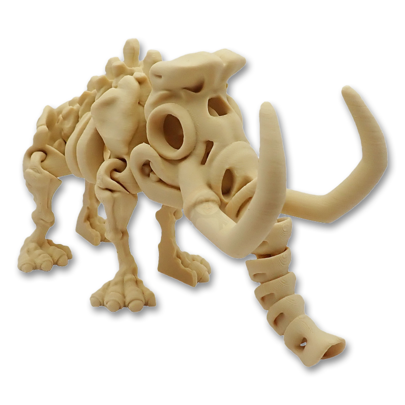 S přátelským výrazem, který vypadá, jako by se usmíval, a čtyřmi zadními zuby, které vykukují, je tato kostra mamuta dokonalým způsobem, jak oživit váš pracovní stůl nebo pokoj. A to není všechno! Díky pokročilé technologii 3D tisku jsme mu mohli propůjčit ohebné nohy, hlavu, ocas a samozřejmě chobot. Ano, čtete správně – chobot! A nezapomeňte na ty dva impozantní kly, které dodají mamutovi opravdový šmrnc!