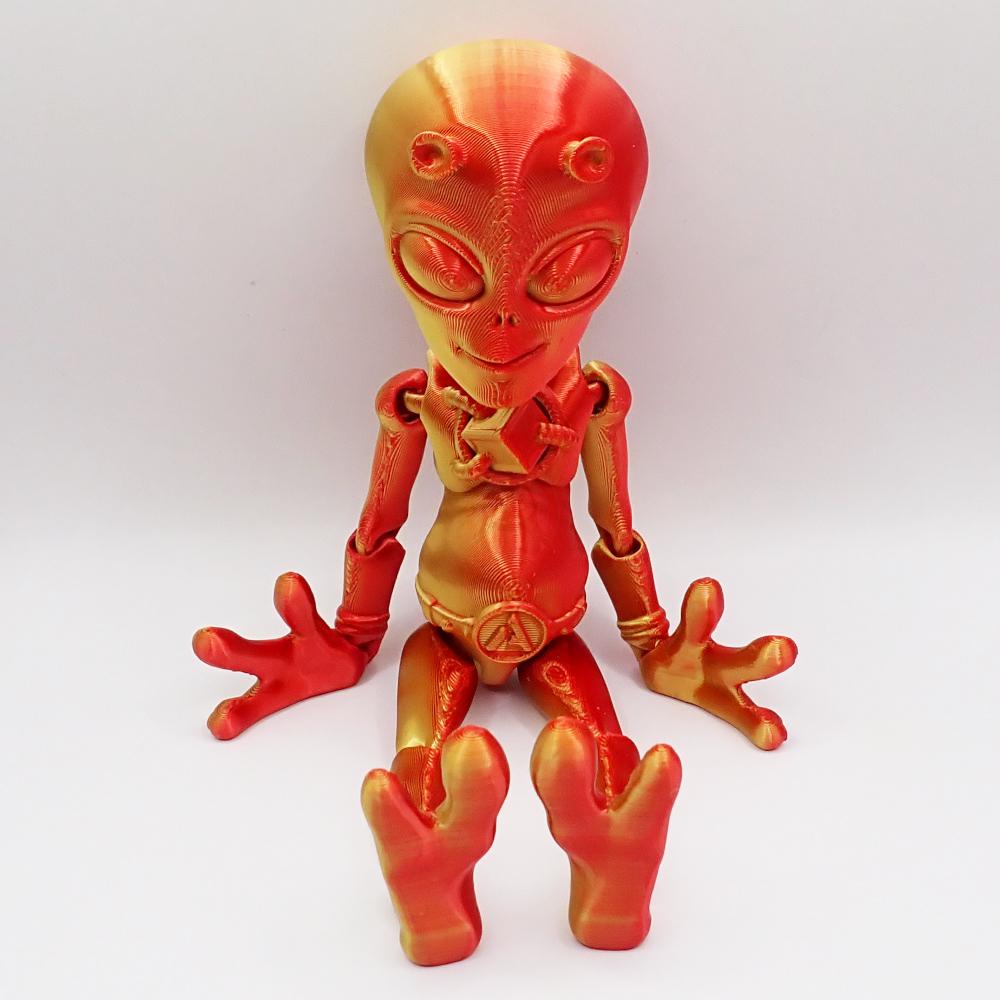 Náš mimozemšťan je vyroben s láskou (a trochou mimozemské magie) a jeho super ohebné klouby ho činí dokonalým společníkem pro všechny vaše fantazie. Chcete ho mít jako neohroženého bojovníka stojícího po vašem boku při obraně vesnice před draky? Žádný problém! Nebo co takhle jemného baletního tanečníka, který piruety točí lehčeji než vítr v jarní zahradě? Mimozemšťan zvládne i to!