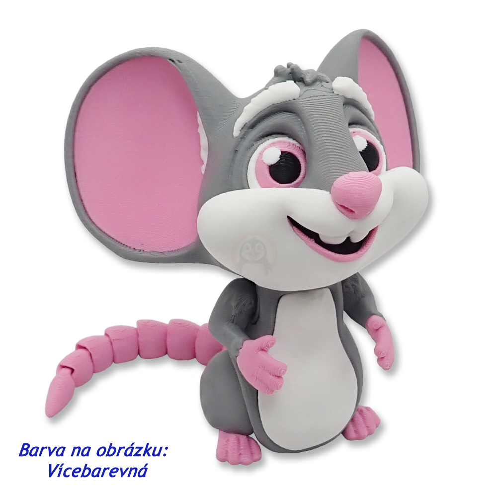 Seznamte se s tou nejveselejší myší široko daleko! Tahle mrňavá rošťanda má ouška jako satelity, ocásek jako laso a cení na vás dva ty nejroztomilejší zoubky, jaké jste kdy viděli. Navíc má pohyblivé tělíčko, takže se může vrtět, točit, máchat pacičkami a pózovat jako pravá modelka – jen foťák do tlapky a může rovnou na titulku Myšího magazínu!