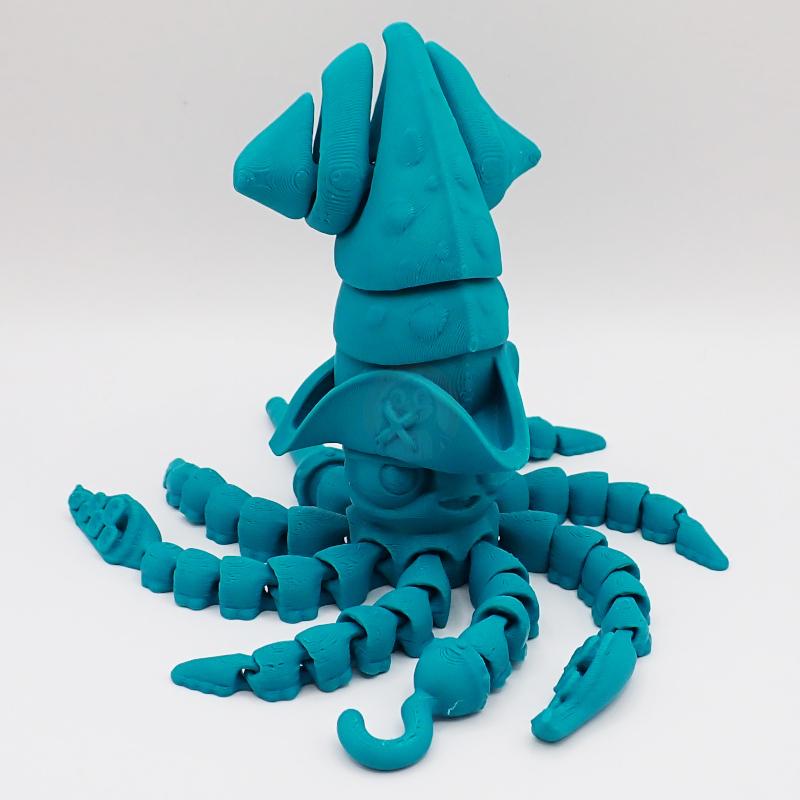Tato oliheň má všechno, co opravdový pirát potřebuje. Její odhodlaný a zlomyslný výraz vás nenechá na pochybách, že je připravena na jakékoli dobrodružství. Dejí hlava a chapadla jsou nesmírně ohebná, takže ji můžete postavit do jakékoli akční pózy. S úsměvem, který odhaluje jeden horní zoubek, a s osmi chapadly, z nichž dvě jsou delší a na dalších dvou je pirátský hák a dřevěná noha, je tato oliheň připravena na každou bitvu.
