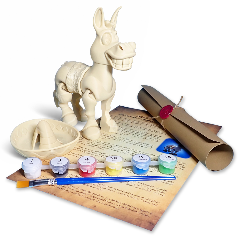 Každá naše postavička má svůj vlastní jedinečný příběh, který vás a vaše děti zavede do kouzelného světa plného fantazie! Spolu s 3D omalovánkou si můžete pořídit i originální pohádku, ve které je daná postavička hlavním hrdinou - 88. Příběh Mexického Oslíka Pedra: Jak sombrero a tajemný cizinec přivedli radost do města. Přidejte si tuto pohádku k objednávce a udělejte si z malování ještě krásnější zážitek, nebo si ji schovejte jako milou odměnu po vybarvení postavičky. 📖 A na konci pohádky? Tři kreativní úkoly, které rozproudí dětskou představivost!