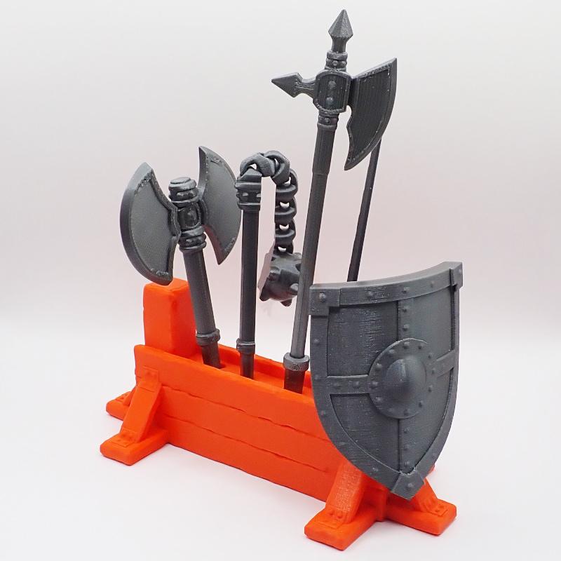 Naše rytířská výbava je perfektním doplňkem k naší postavičce rytíře, ale věřte, že i rytíř kostlivec by ji nechal ležet na zemi jen velmi nerad. Užijte si nekonečné hodiny zábavy, když vašemu rytíři nasadíte štít, meč, sekeru, palcát nebo halapartnu. Tato krásně vytištěná kolekce z 3D tiskárny přináší detaily, které by ocenil i samotný král Artuš.
