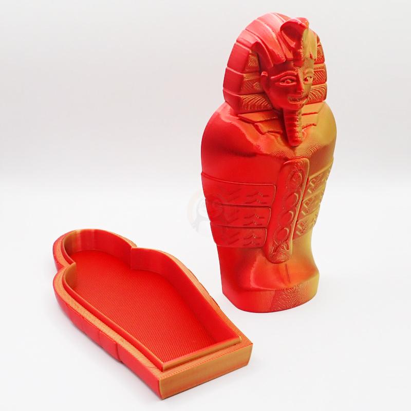 Chcete dát své mumií opravdu luxusní domov? Tento sarkofág je přesně to, co potřebujete! Není to jen obyčejná krabice na spaní, tohle je královská pohovka pro vaši oblíbenou mumii. Vyrobený s detailním vyobrazením faraona, který si užívá slunečné paprsky (nebo aspoň to vypadá), tento sarkofág přináší do vaší sbírky nejen mystiku, ale i špetku faraonského luxusu.