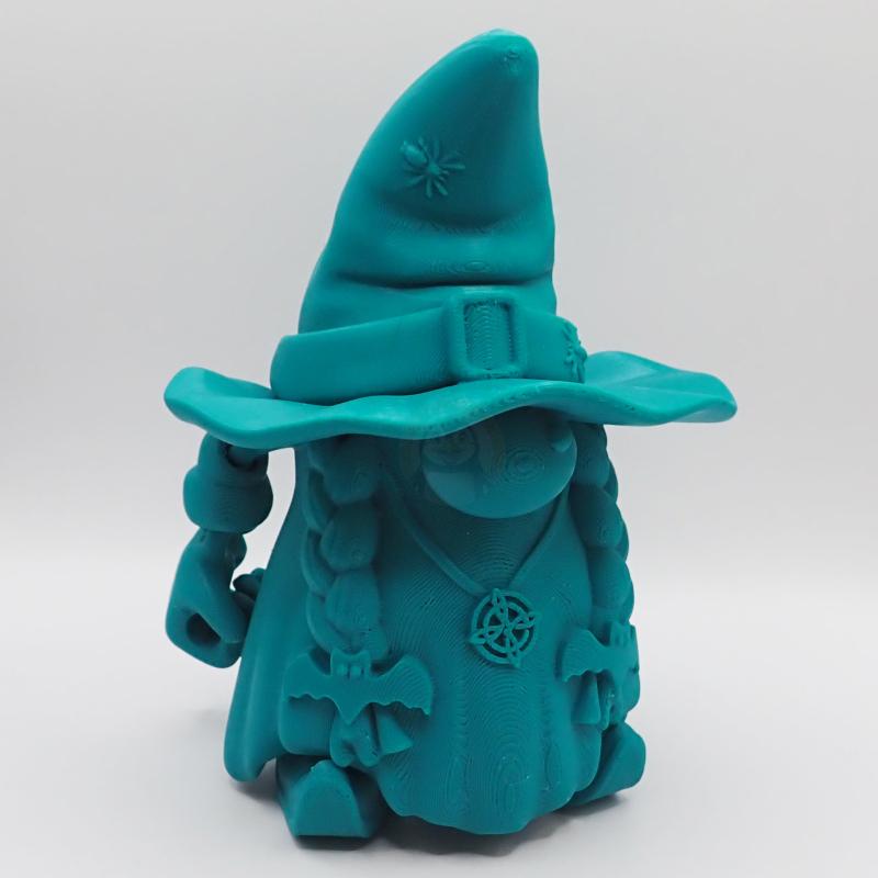 Připravte se na pořádnou dávku kouzel (a možná i malé katastrofy)! Naše skřítka čarodějnice je opravdová mistryně lumpáren – stačí se podívat na její ohebné ruce, které jí umožňují vymýšlet ty nejzapeklitější čáry a kouzla. Na hlavě jí trůní pořádný špičatý klobouk, který jí jen tak neulétne, ani když to na koštěti pořádně rozjede! A ta bradavice na nose? To je přece známka pravé čarodějnické kvality! Její dva copánky jsou zakončené gumičkami ve tvaru netopýra – stylová čarodějnická klasika, která nemůže chybět.
