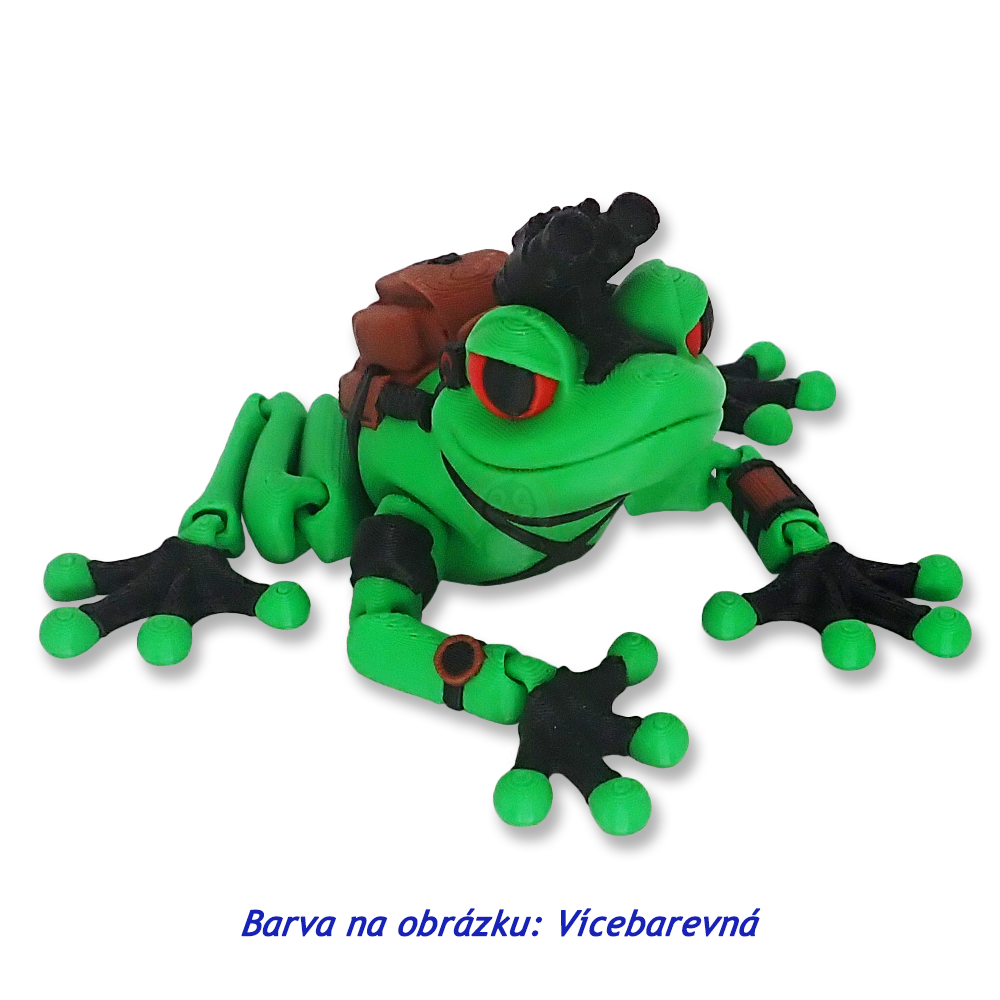 Ticho, právě přichází… Agent Žabák! Ne obyčejná žába z rybníku – tenhle zelený frajer je vycvičený mistr převleků, hádanek i skákání do dálky! Na hlavě má dalekohled pro sledování podezřelých šneků, v uších poslouchá přes špionážní sluchátka a na zádech si nosí batoh plný přísně tajných věcí (nebo svačinu, to záleží na misi). Rukavice? Samozřejmě – nikdy nevíte, kdy budete muset šplhat po leknínu. A nůž za pasem? Čistě pro případ, že bude potřeba ukrojit si dort na tajné oslavě!