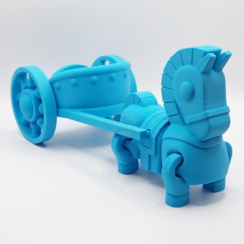 Představujeme ultimátní válečný stroj – válečný vůz tažený odhodlaným koněm, který je připraven vyrazit na bitevní pole! Koník má ohebné nohy, takže se může hrdě vzepnout na zadní, když začne ta pravá jízda. Vůz má dvě velká kola – jedno na každé straně – ideální pro divoké manévry v boji i při vítězném průjezdu arénou.
